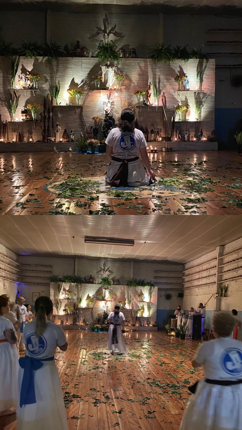 Casa agraciada com mais uma gira cheia de luz e ensinamentos. Devido a um compromisso de Mãe Lilian, a gira foi conduzida por Mãe Luane de Iemanjá. A primeira parte da gira, conduzida pelo Caboclo do Mar, trouxe a força dos caboclos para os passes e o momento de cura com o tradicional e sagrado bate-folhas. Atendendo aos pedidos de Vó Benta, Vó Ana esteve em terra para conduzir a segunda parte da gira. Com seu carinho, ela saudou a todos espalhando beijos com as mãos, emanando cuidado e afeto. Após os atendimentos aos consulentes, um trabalho dedicado às famílias foi realizado. Nele, cada participante trouxe flores. A espiritualidade aproveitou o momento para compartilhar mensagens sobre respeito, amor, cuidado e as virtudes que devemos cultivar em nossos lares e nas relações com aqueles que amamos.